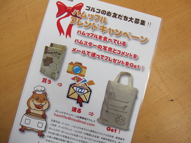あのハムッフルを販売するメディマルさんより、フレンドキャンペーンのお知らせが。