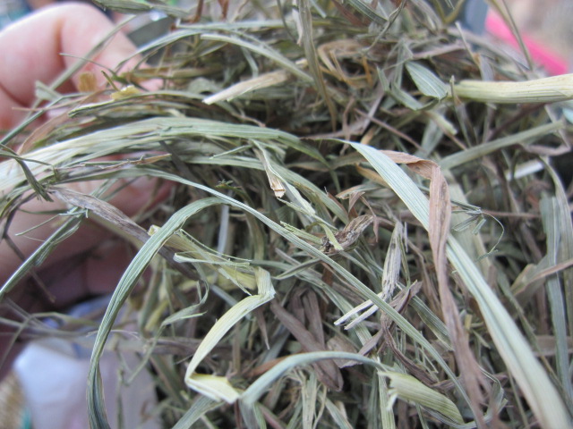 一般的な1番刈りチモシーは茎が多く、比較的その茎を食べないコがほとんど。