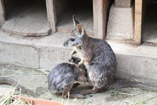 ブリーダーさんのところにいるワラビーとその赤ちゃん