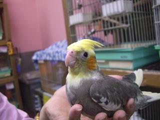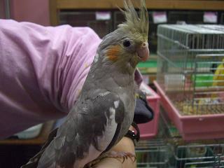 今、本店鳥コーナーでは、手乗りになったオカメを触れるための