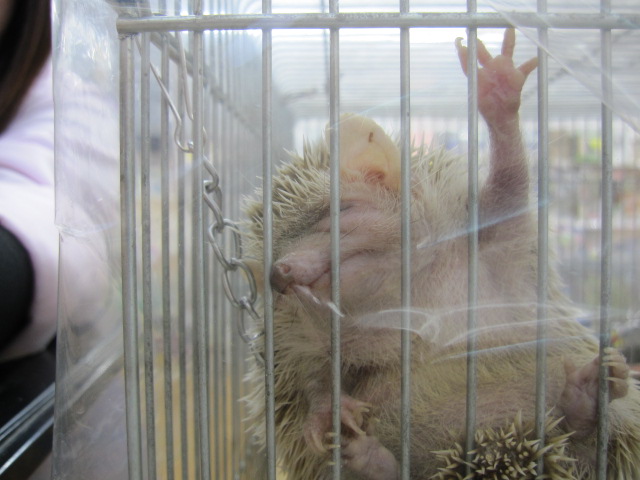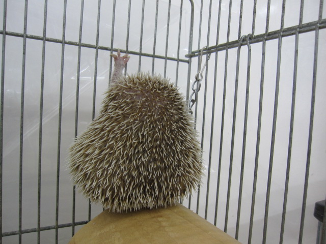 夜行性な為、皆様がご来店頂く時間帯はお寝む中がほとんどで、正直見た目がハリネズミさんと変わらない為か、『ハリネズミだ!』と100%間違われます。